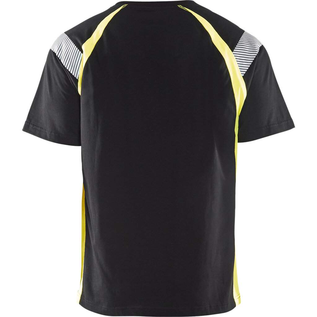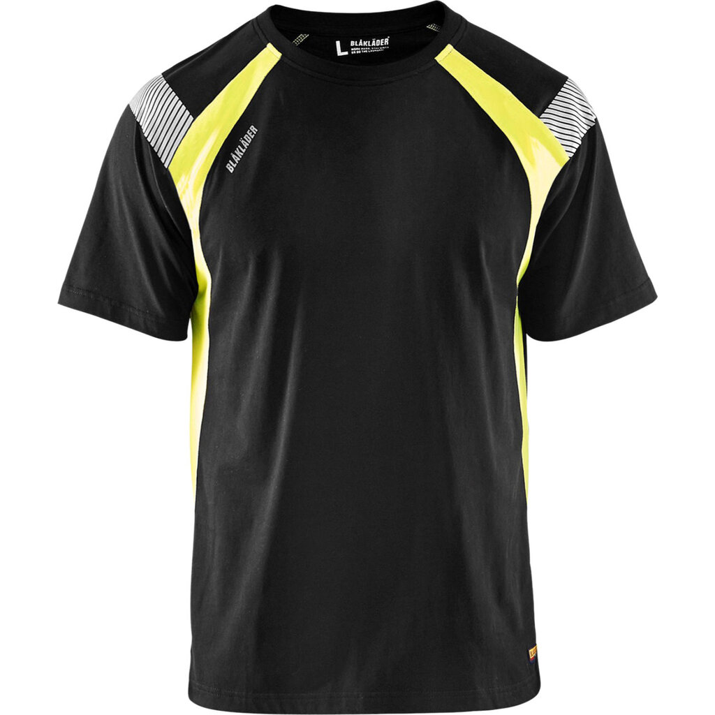 Blaklader's nieuwe 3332-1030 T-shirt Visible. Een normaal werk t-shirt in zwart of marineblauw met gele reflectie elementen voor betere zichtbaarheid. Dit t-shirts is dus met beter zicht, maar geen hoge zichtbaarheid of veiligheidsnormering.