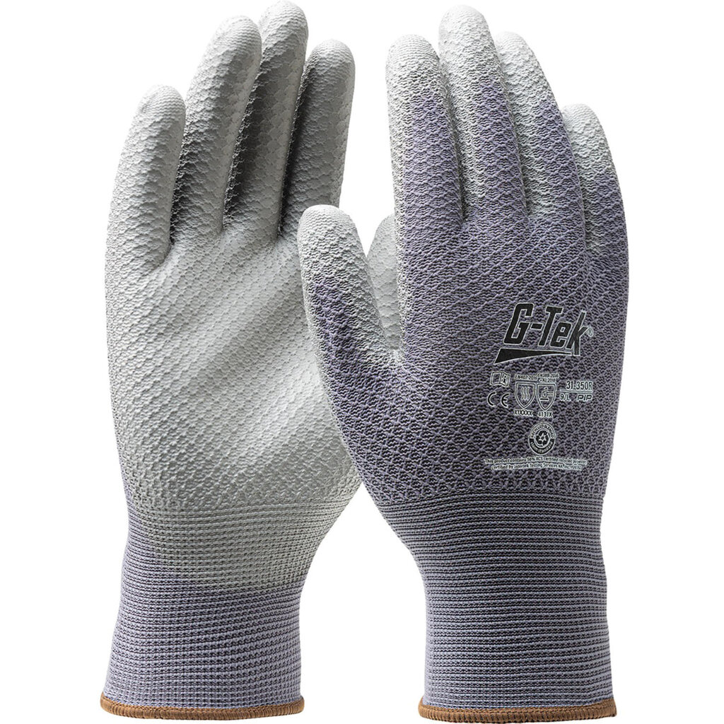 De PU-coating op de palm en vingertoppen zorgt voor een stevige grip, hoge slijtvastheid en uitstekende vingergevoeligheid. Dankzij de soepele, ademende stof voelt de handschoen licht en comfortabel aan, zelfs bij langdurig gebruik. Met zijn 13-gauge voering biedt de G-Tek® 3RX™ 31-350R een perfecte balans tussen bescherming, flexibiliteit en draagcomfort, ideaal voor nauwkeurige werkzaamheden.