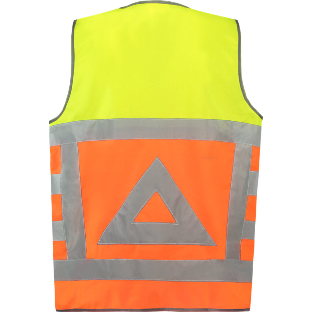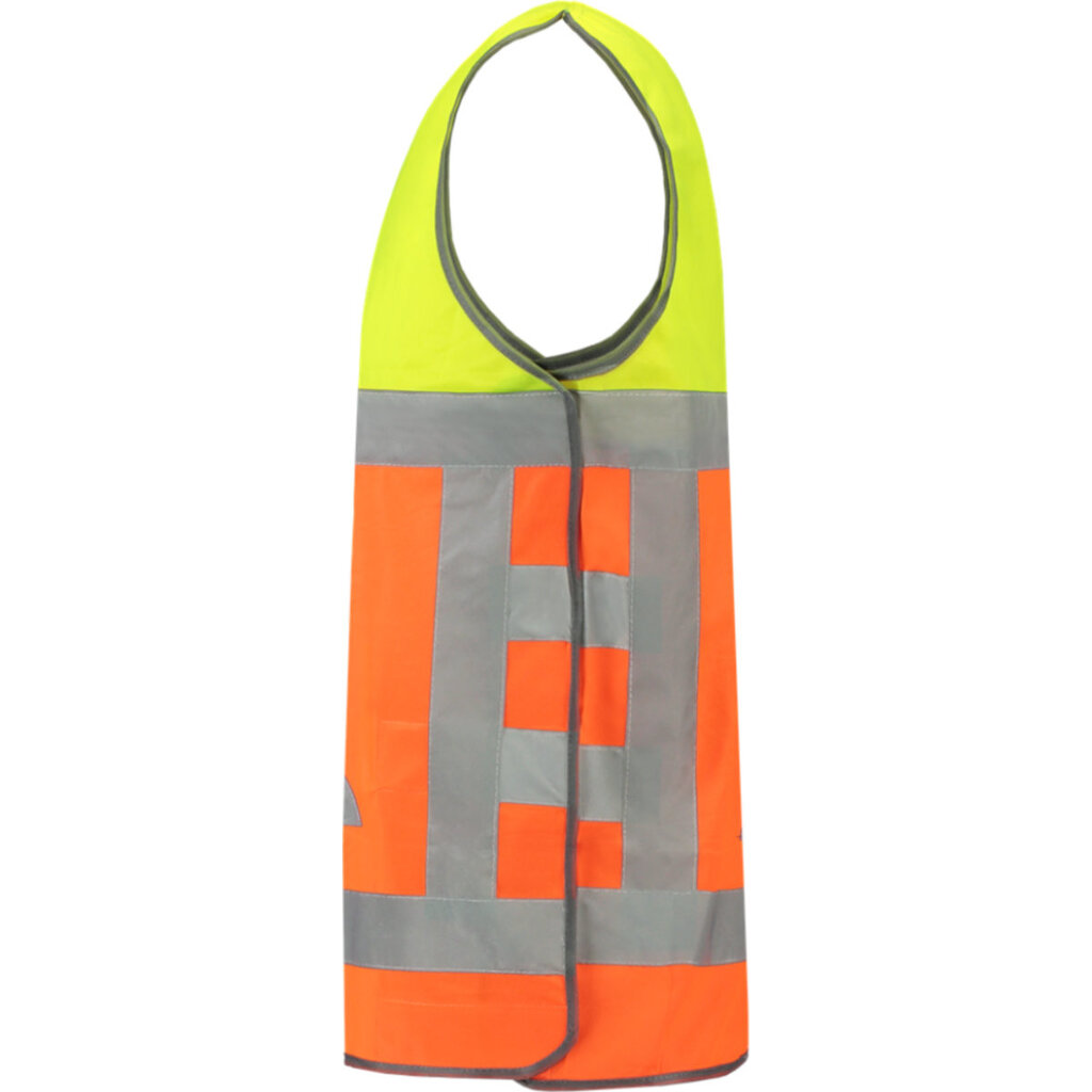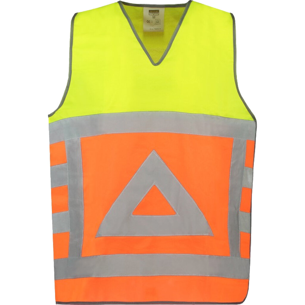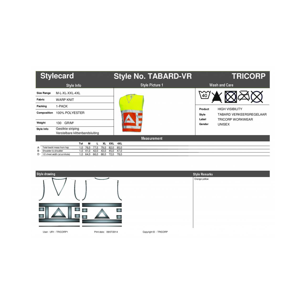 Verkeersregelaarvest van Tricorp Safety, het originele model Tabard VR. Het voldoet nog altijd aan de meest actuele regeling/wetgeving voor Verkeersregelaars. Dit hesje kun je dragen over je kleding of jas en is gemakkelijk aan en uit te doen dankzij de klittenband bevestiging aan de zijkant.