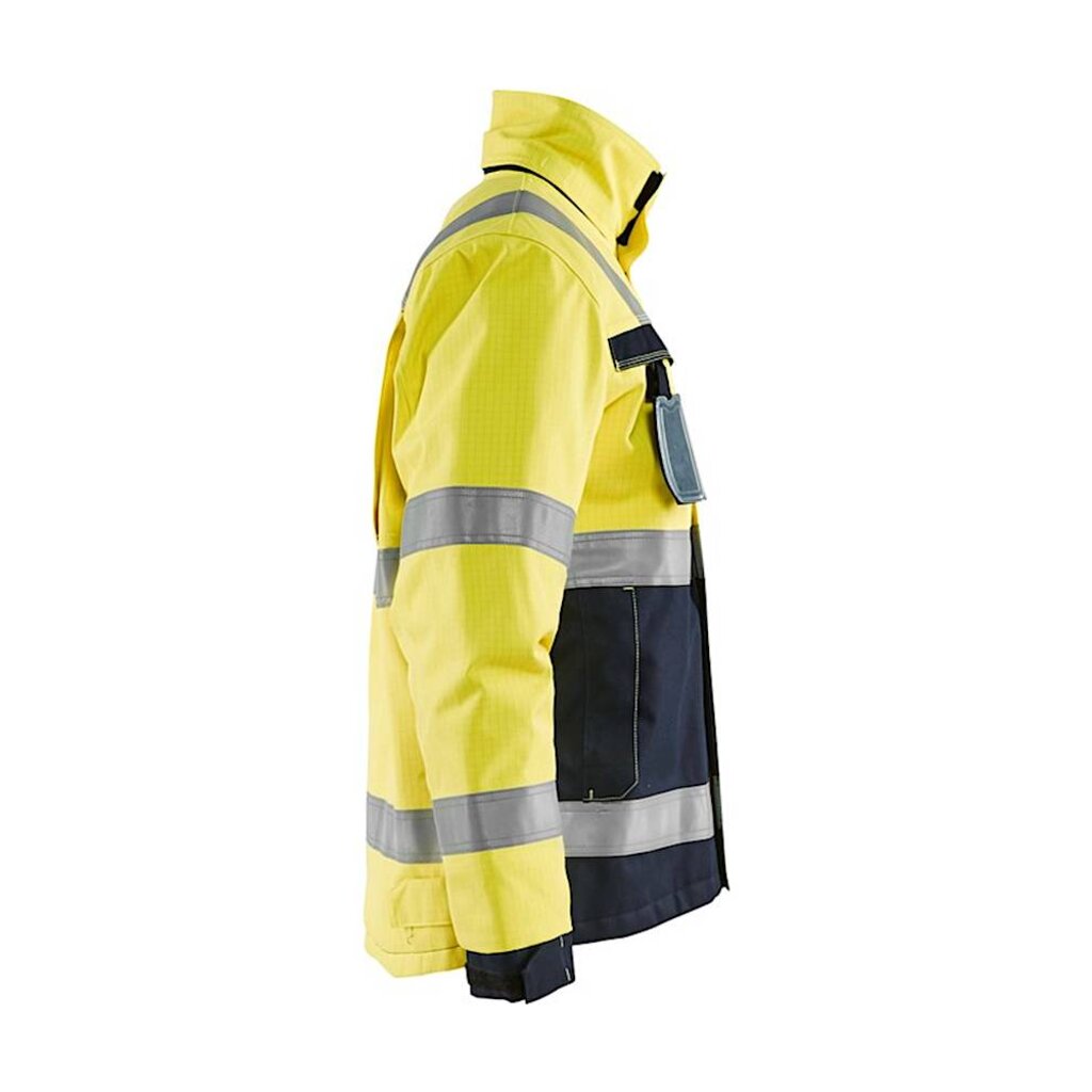 Multinorm winterjas ontworpen voor optimale signalisatie. Kortere voorkant voor maximale bewegingsvrijheid, verlengd rugpand voor betere bescherming aan de onderrug. Borstzak. Houder voor identiteitskaart. Binnenzak met telefoonzakje. Verborgen rits aan de