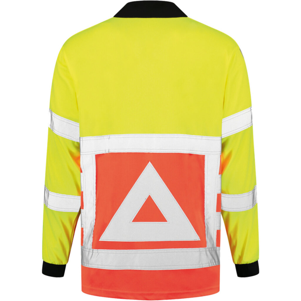 Deze dunne polo met lange mouwen is uitermate geschikt voor verkeersregelaars. De polo maakt je zeer zichtbaar in weinig of geen licht en biedt bescherming tegen nat weer. De fluor kleur en reflecterende accenten op de toros, de rug en mouwen geven het shirt een EN ISO 20471:2013 Klasse 3 veiligheidsnormering. Dit betekent dat het gecertificeerd is voor werkzaamheden in het donker. Daarnaast heeft het een EN 343 Klasse 3:1 normering voor bescherming tegen regen.