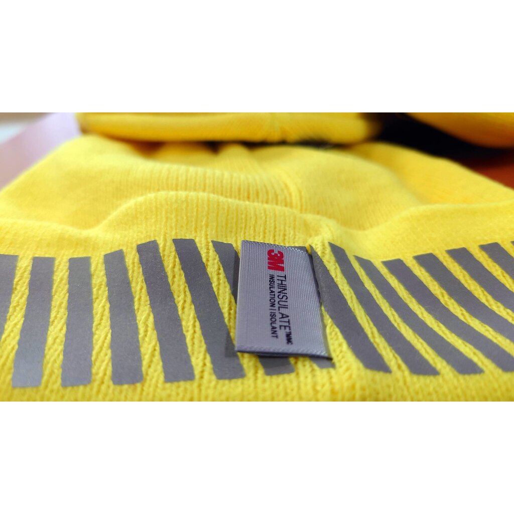 Comfortabele gebreide muts met een stoere pasvorm. De kleur is fluor geel en de reflecterende elementen geven je extra zichtbaarheid. Een ideale aanvulling op je reflecterende werkkleding.