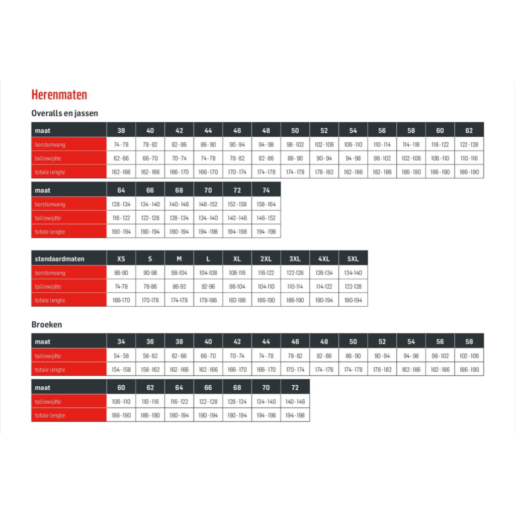 Voor de maatrange S-3XL kunt u de volgende richtlijn gebruiken: