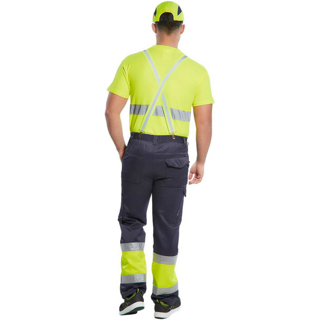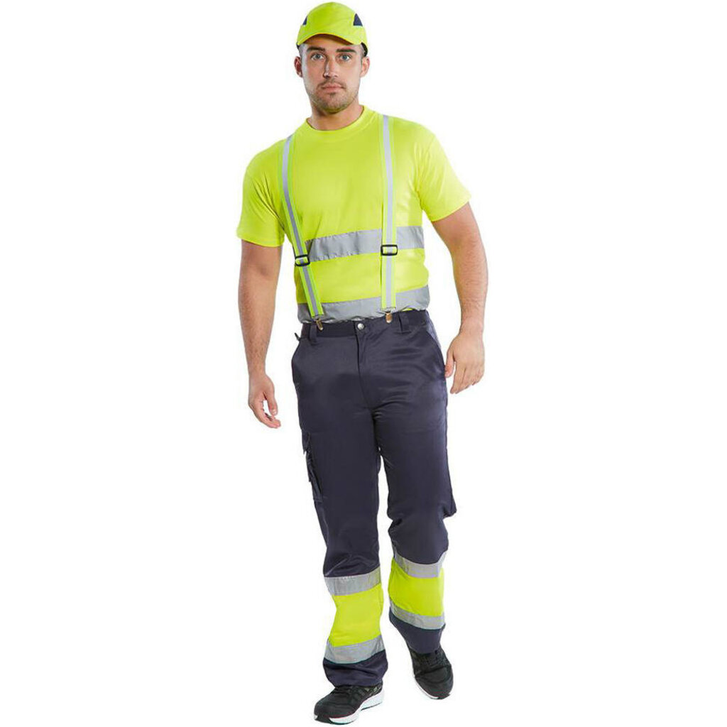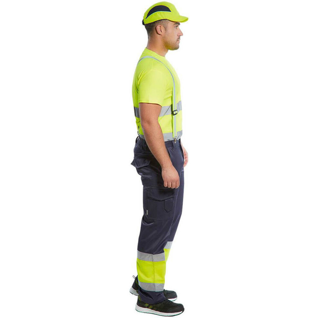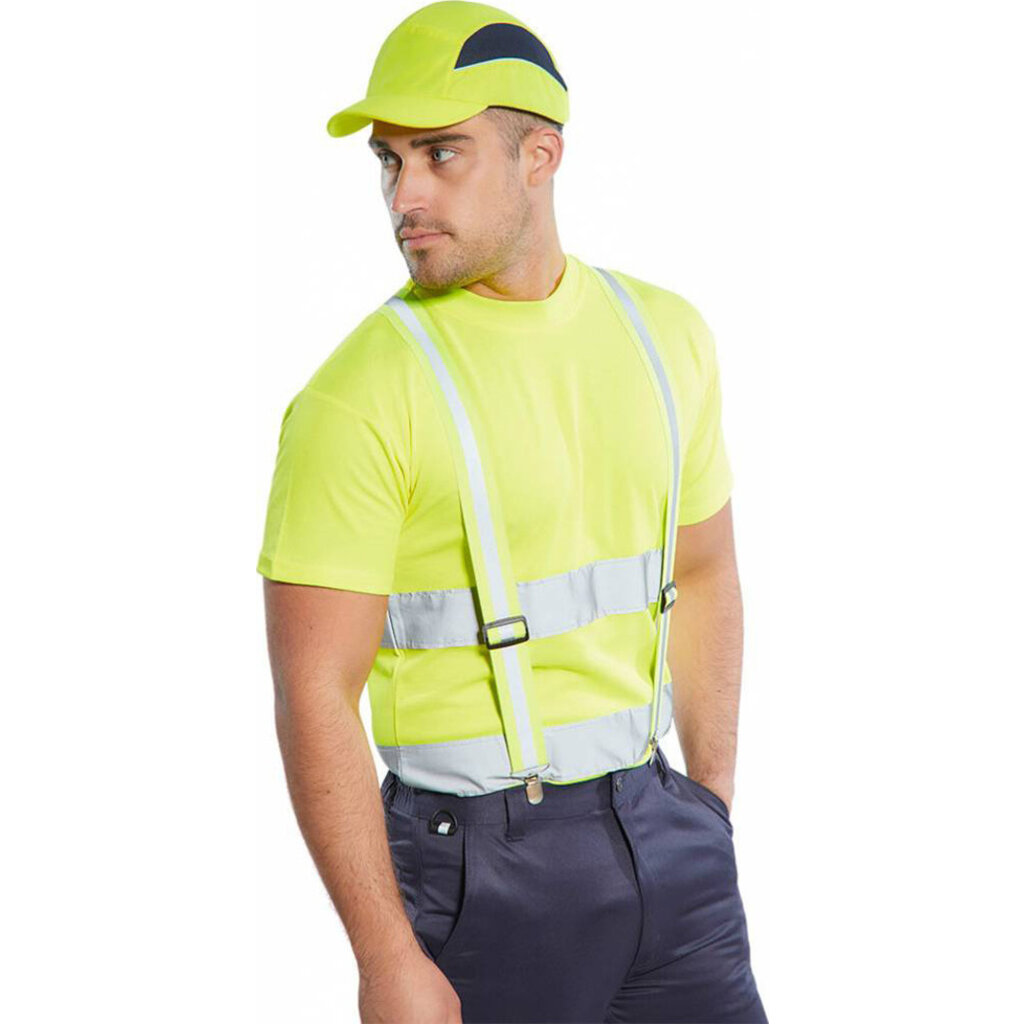 Verstelbare elastische gele bretel, met 4 bevestigingspunten zodat deze op iedere broek past. In hoge zichtbaarheids kleur geel en een reflecterende band voor betere zichtbaarheid.