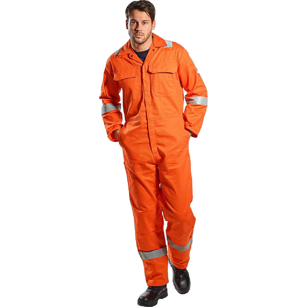 Dit overall is van top tot teen volledig vlamvertragend en voldoet aan de volgende veiligheidsnormeringen: