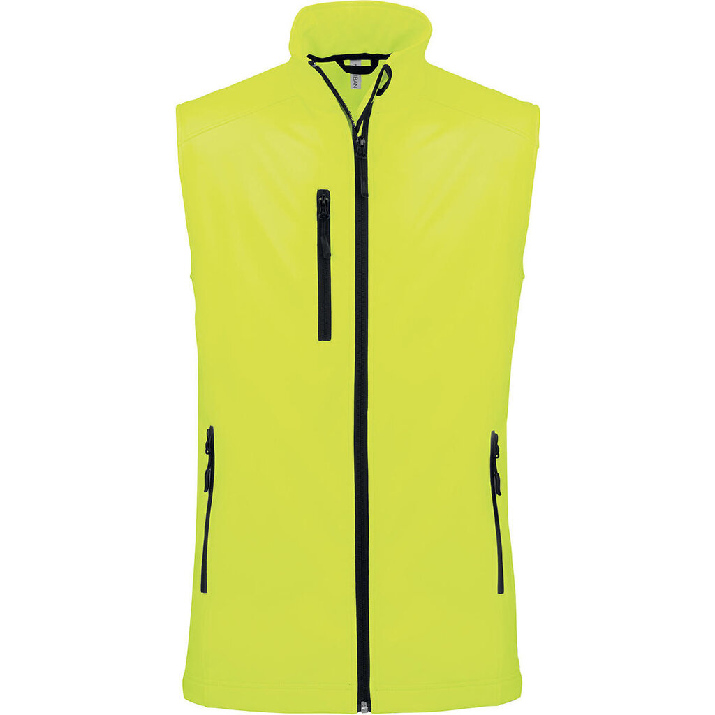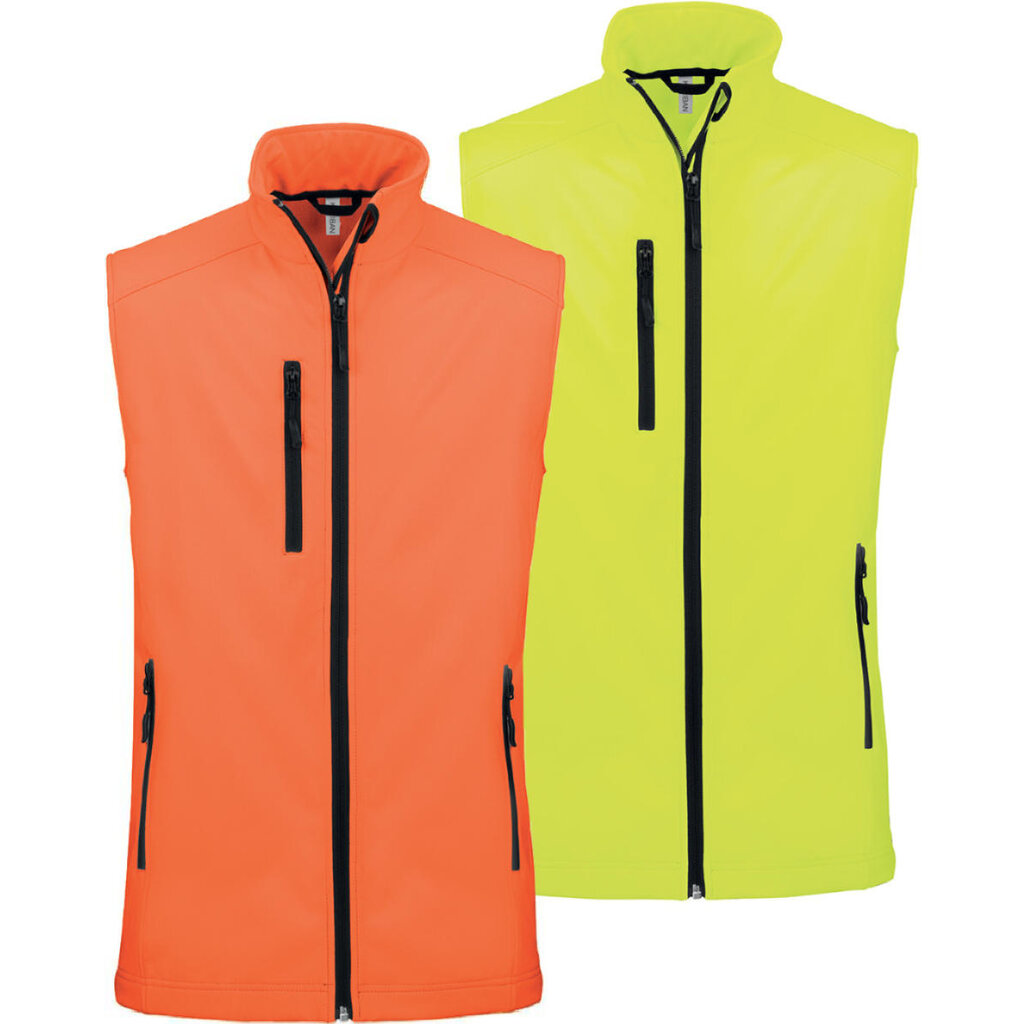 Softshell bodywarmer voor heren K403. In fluoriserend geel of fluoriserend oranje en diverse maten.