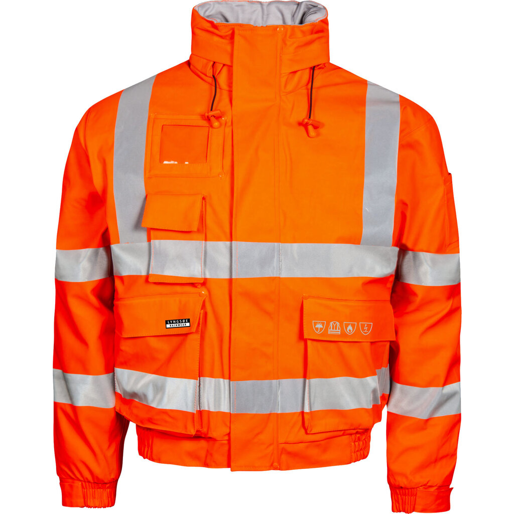 Waterdichte winter regenjas, hi-vis, antistatisch en vlamvertragend.