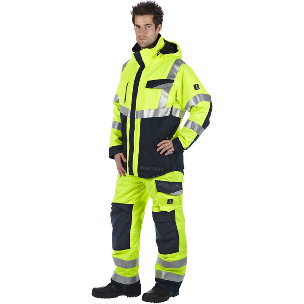 - Fluorescerend met reflectiebanden op de borst, schouders en mouwen.