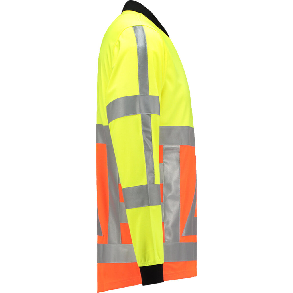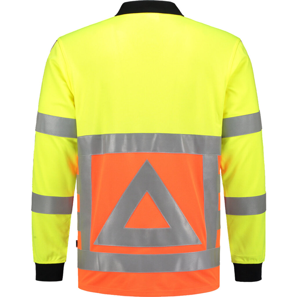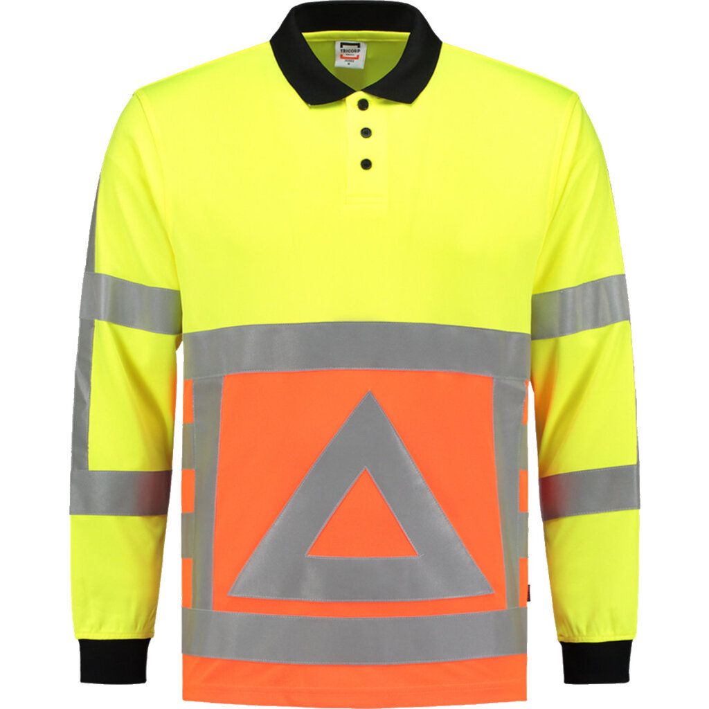 Een poloshirt met Hi Vis elementen zoals je gewend bent van bijvoorbeeld de Tabard VR of Softshell VR. Deze verkeerspolo heeft lange mouwen (ook met reflectie strepen) en de mouweinden, kraag en knopen zijn zwart.