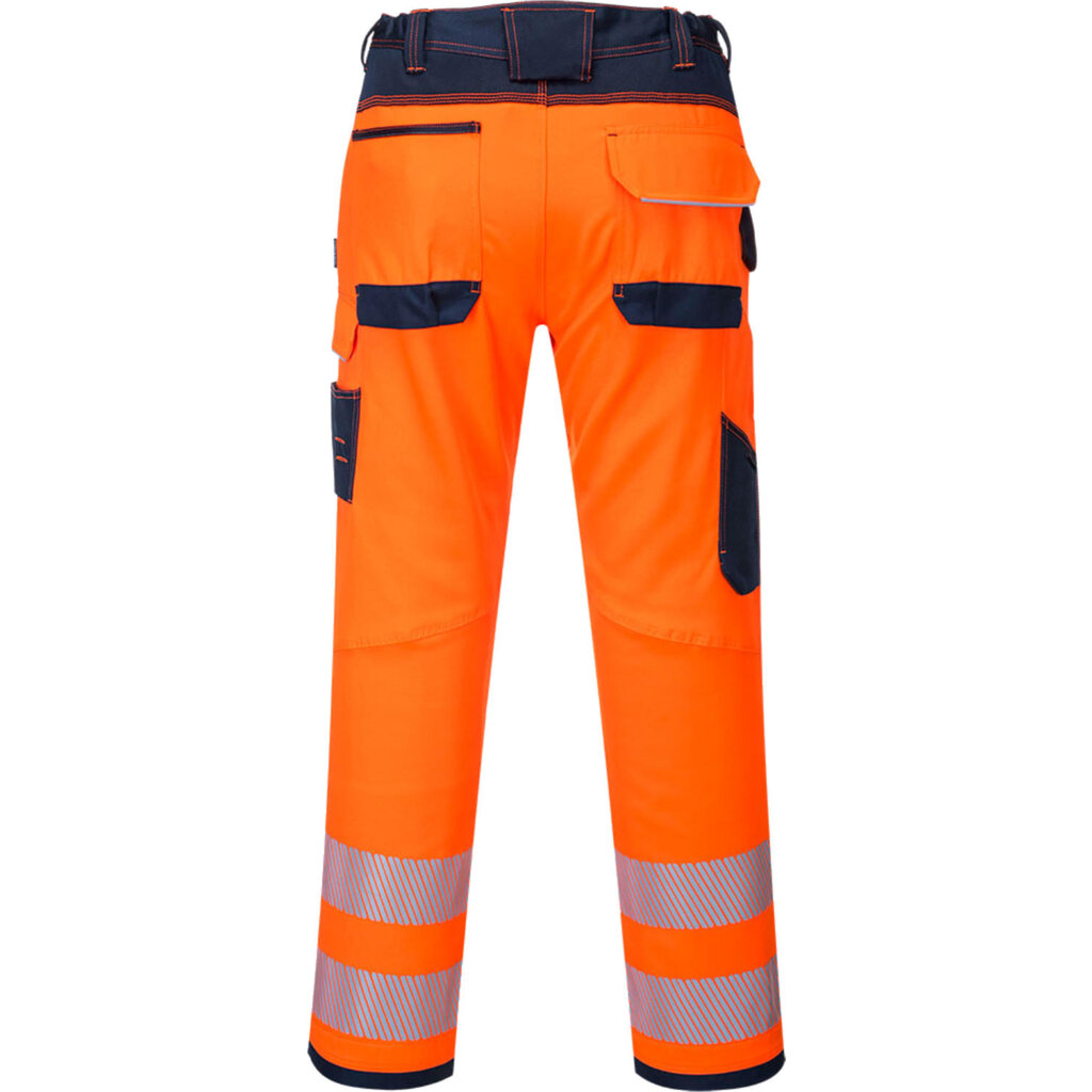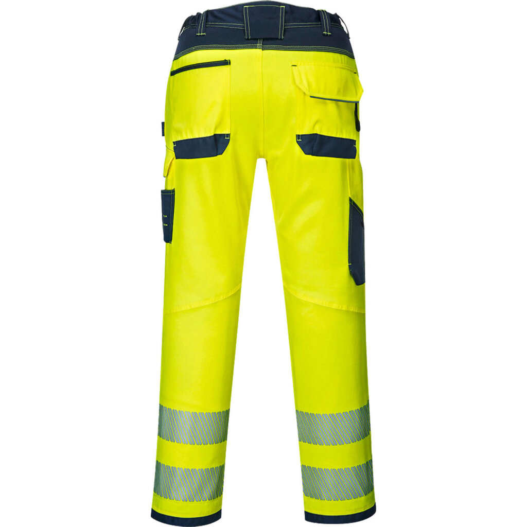 Tijdloze werkbroek van Portwest, Hi-Vis en uiterst duurzaam. Deze broek uit de PW3-lijn is gemaakt van Kingsmill polykatoen dat met Oxford polyester is versterkt op slijtagegevoelige plekken. Hiernaast zijn er driemaal gestikte naden aangebracht om stevigheid te garanderen en een premium PU finish om water en vuil af te stoten.