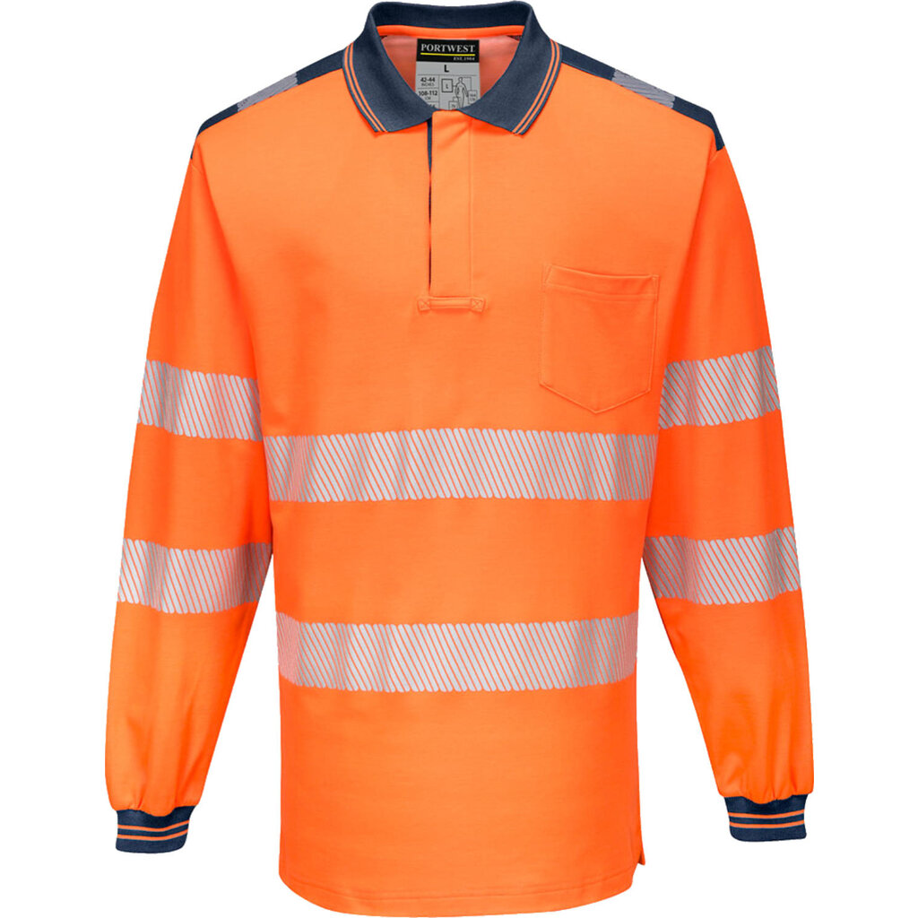 Dit poloshirt is van ademend comfortmateriaal met een premium feel (gebreid katoen en polyester) en geeft veel bewegingsvrijheid, ook dankzij de onderbroken reflectiestrepen. Deze bewegen beter met de stof mee dan doorlopend reflectiemateriaal. De T184 is verkrijgbaar in fluorescerend oranje en geel, met marineblauwe en zwarte details.