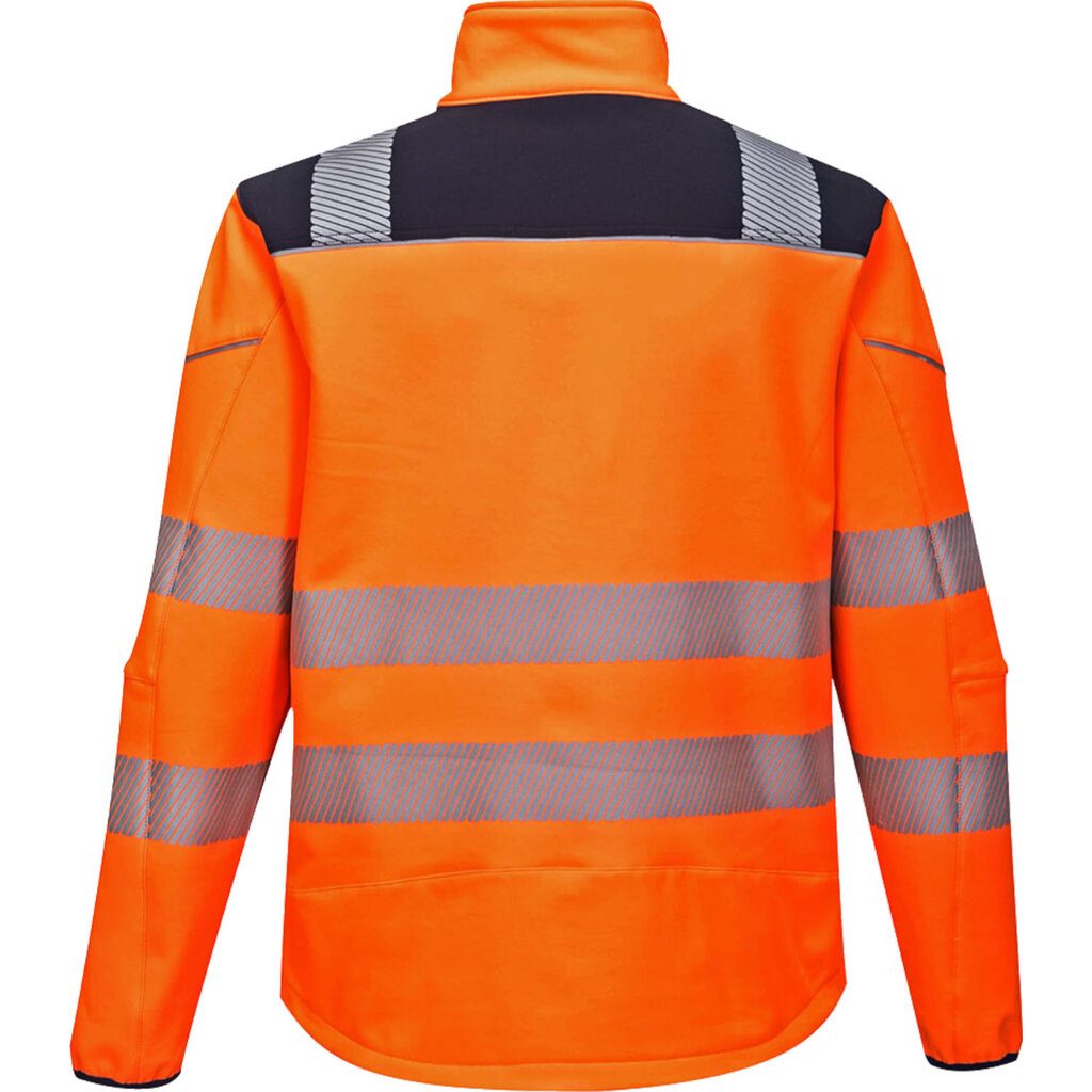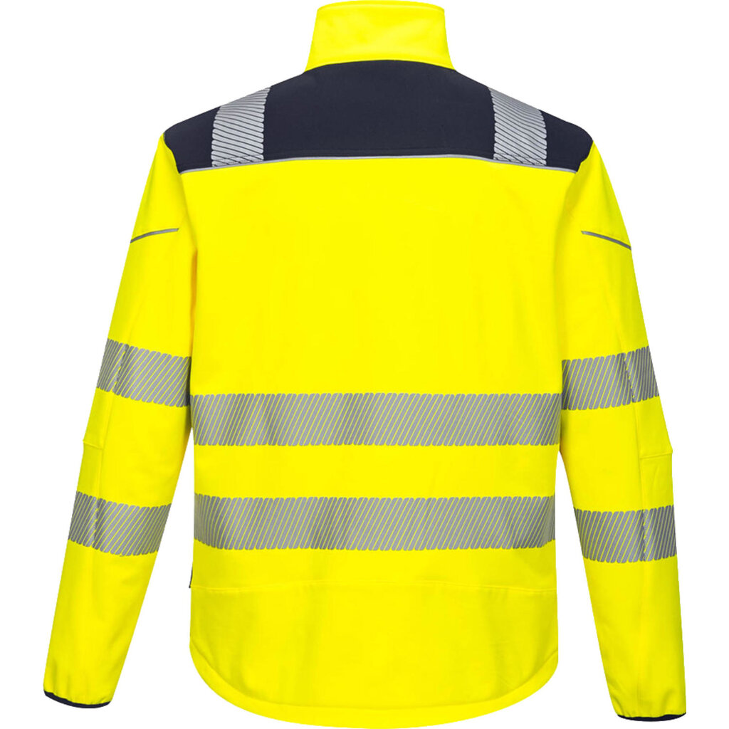 PW3 Softshell Jack, gekenmerkt door een fris, modern ontwerp en stijlvolle pasvorm. Een must-have in de werkkledinglijn voor professionals, dankzij het hoogwaardige drielaags doek (water- en winddicht, ademend) gecombineerd met allerlei nuttige extra's. Door de HiVisTex Pro reflecterende banden en opvallende fluor kleuren val je geheid op in allerlei situaties!