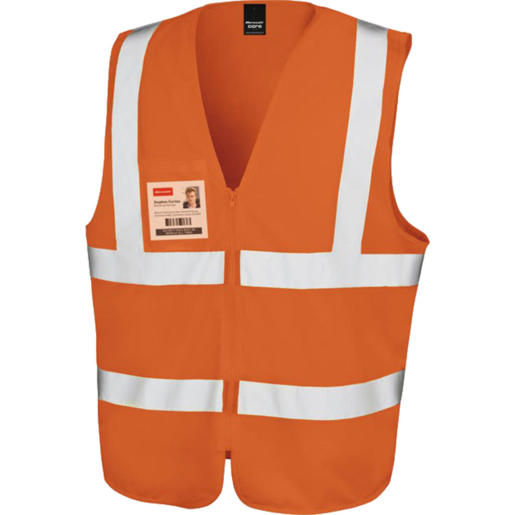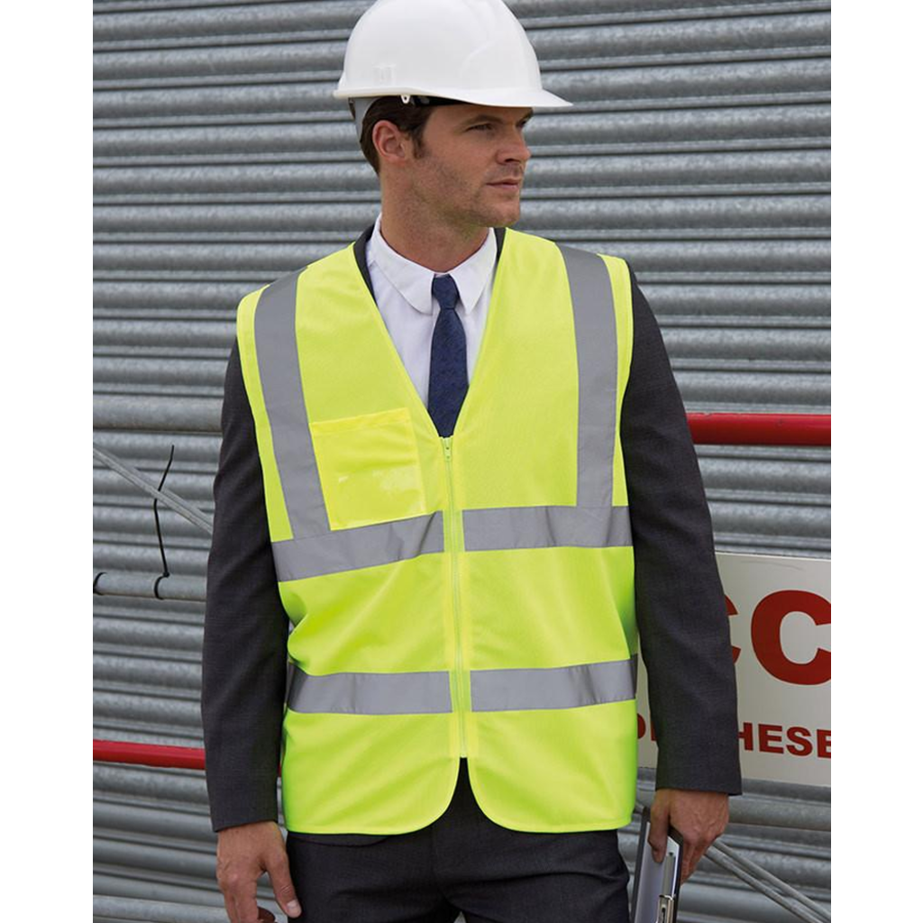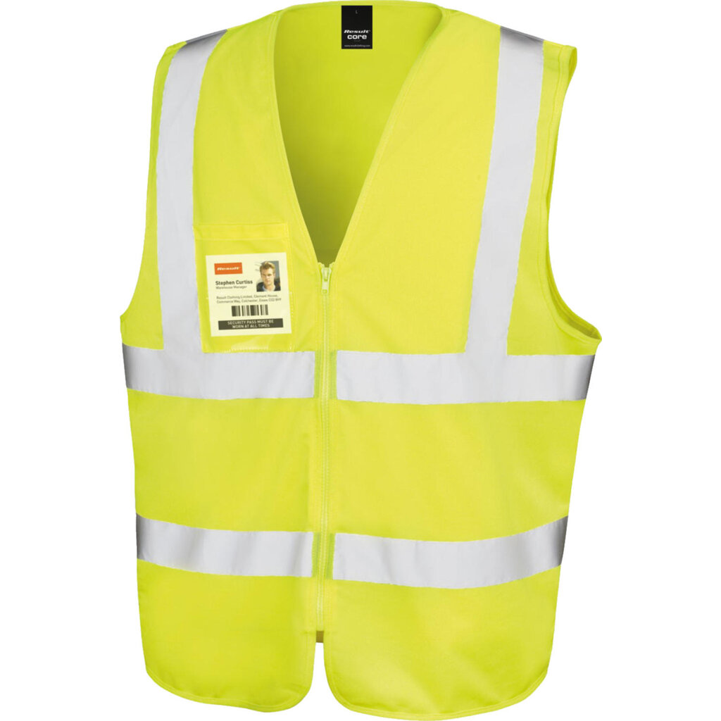 Het R202X vest heeft voorzakken met ID/naamkaarthouder op de rechter borst. Zware stevige rits. Reflecterende horizontale en verticale genaaide strepen 50mm. Dit vest wordt gedragen over de normale kleding of jas en valt dus ruim.