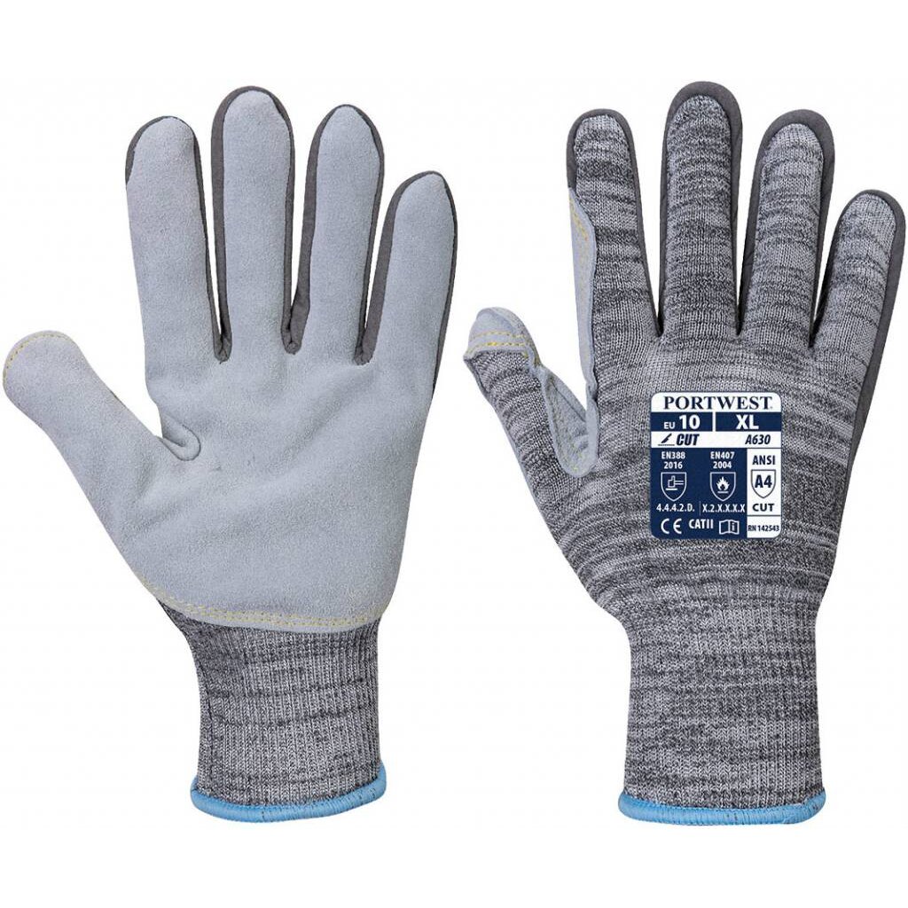 Snijweerstand niveau 5 handschoenen A630 Razor lichtgewicht model, met palm versteviging van leer. Ideaal voor bijvoorbeeld de glasverwerkende industrie.