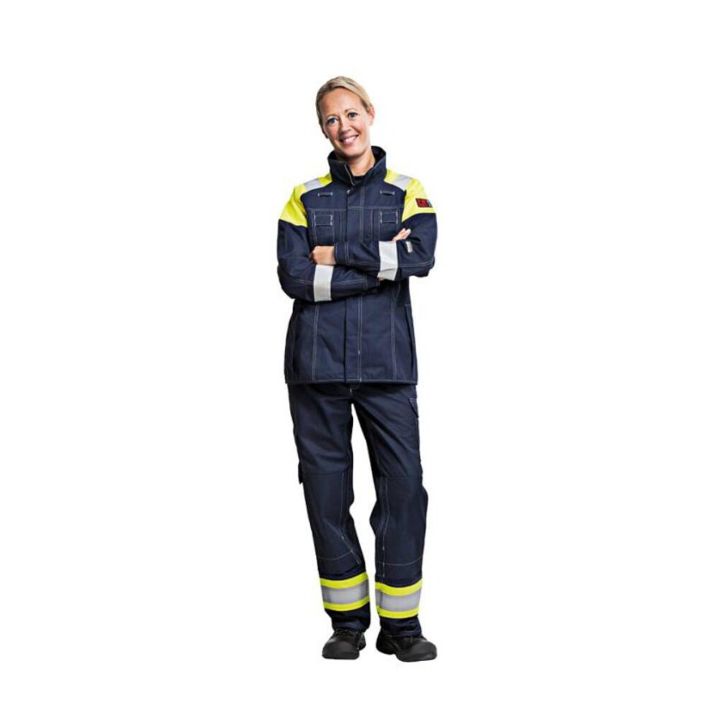 Tranemo dames werkjack. Beschermd tegen vloeibare chemicaliën, is geschikt voor laswerk en is vlamvertragend, antistatisch en vlamboog werend.
