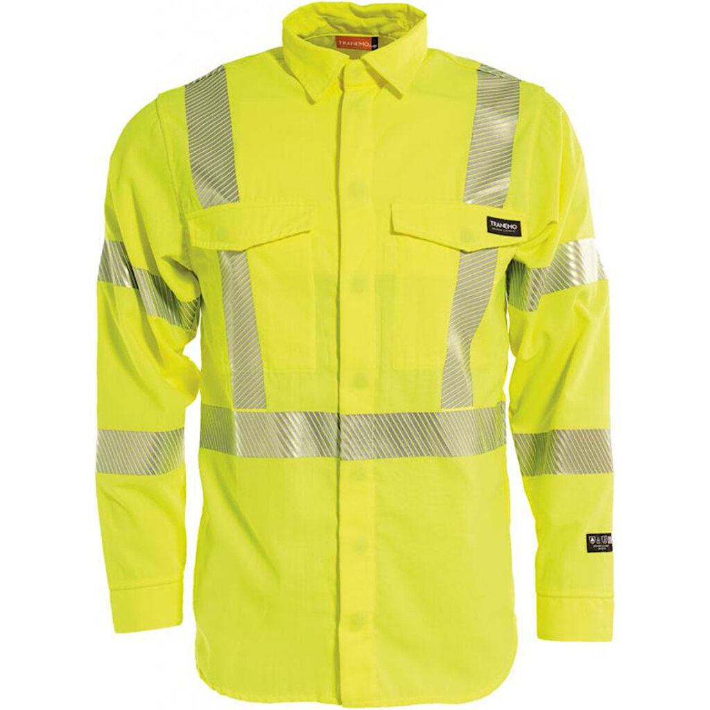 High-visibility, vlamwerend en antitistatisch overhemd van het merk Tranemo in de kleur geel.