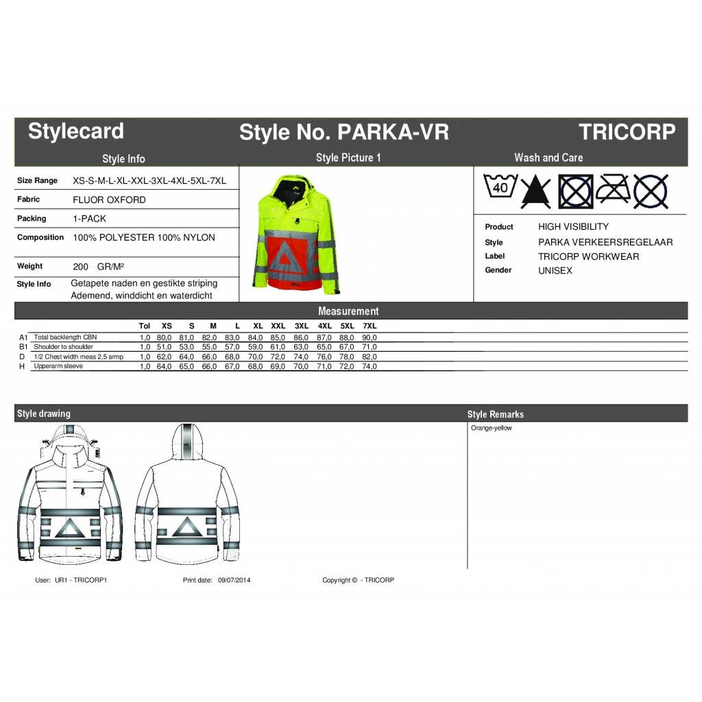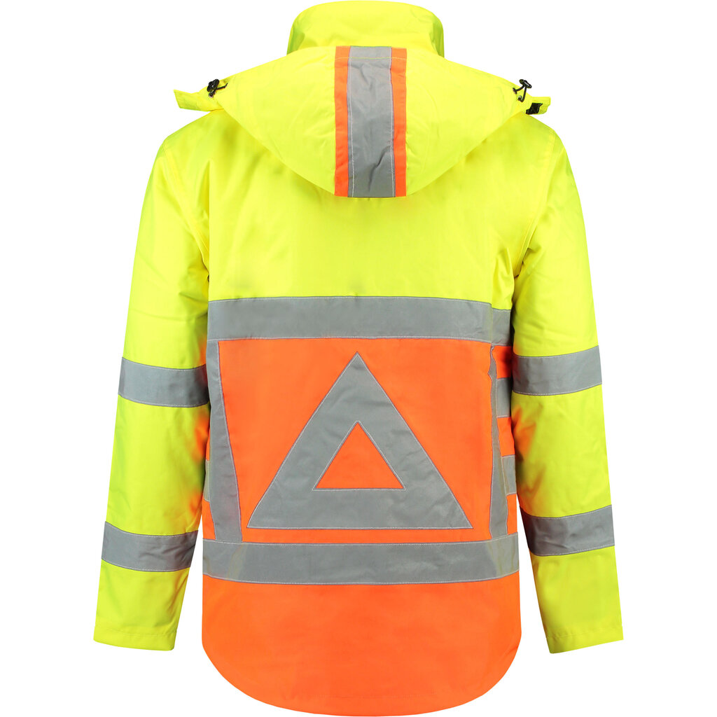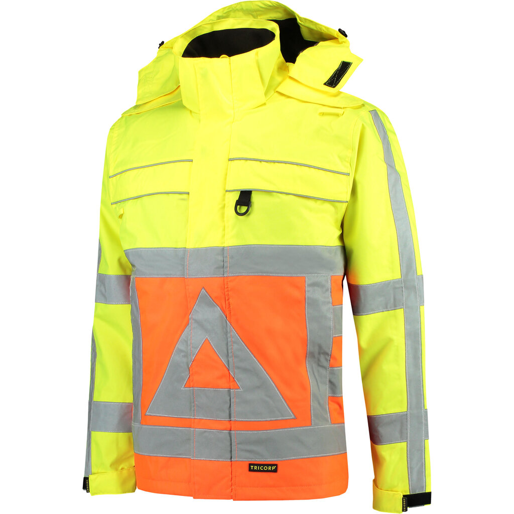 Jas voor verkeersregelaars van het merk Tricorp. De jas is aan de achterkant iets langer, dit geeft extra bescherming en dekking in gebukte houding. Geschikt als winterjas maar ook voor warmere of wisselvallige dagen dankzij de uitneembare thermo binnenjack.