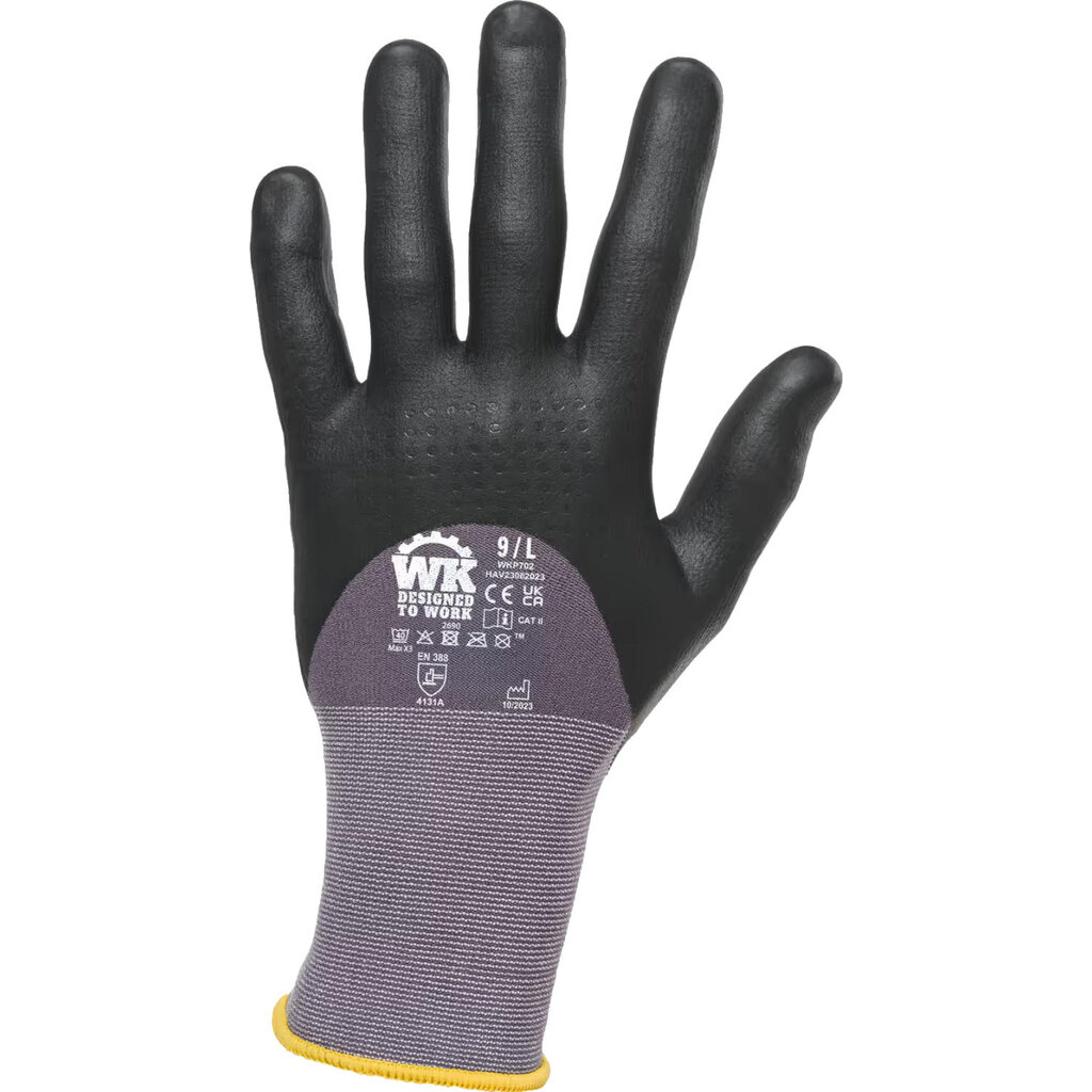 Ga iedere zware uitdaging aan met de WK. Designed To Work WKP702 PBM Handschoenen voor zwaar werk. Deze werkhandschoenen, gebreid in polyamide en elastaan (gauge 15), geven je robuuste en geteste bescherming tijdens intensief werk. Dankzij de nitril coating en noppen kunnen ze langdurige inspanning goed aan. De extra stevigheid gaat gepaard met optimaal comfort en een betrouwbare grip, zodat je volledig kunt focussen op je werk. Met een elastische polsboord met elastisch overstiksel, in een kleur die verschilt per maat, blijven de handschoenen goed zitten.