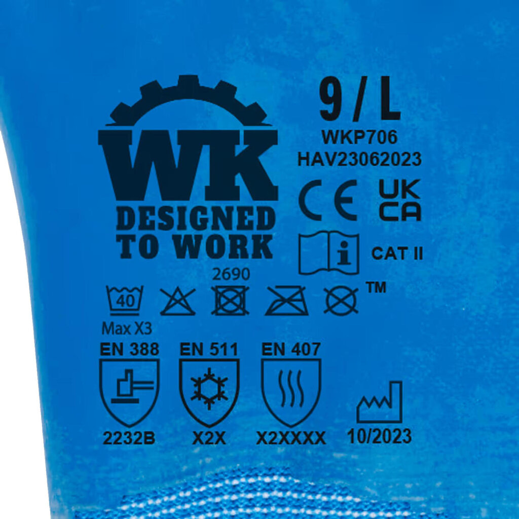 De WK. Designed to Work WKP706 Warmtehoudende werkhandschoen beschermt je handen tegen allerlei vormen van kou én houdt je in staat om optimaal te presteren bij je werk. De combinatie van polyester, acryl en latex biedt isolatie en resistentie tegen koude omstandigheden. Daarnaast garandeert het goede grip, flexibiliteit en behendigheid voor verscheidene taken.